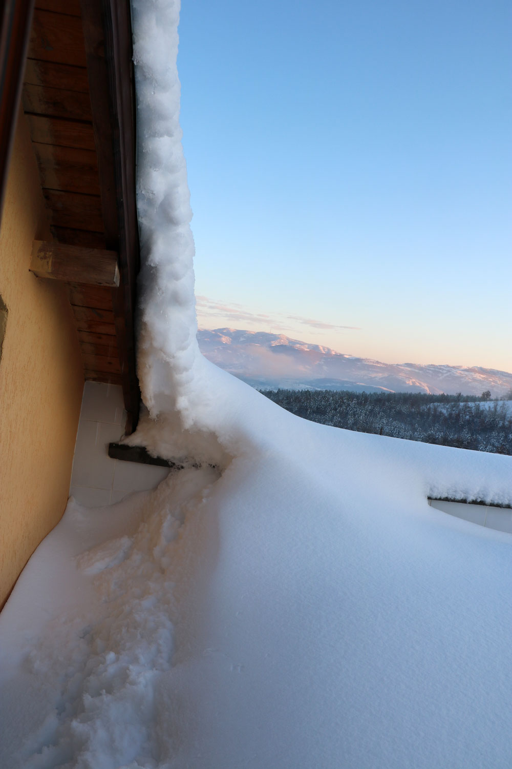 Thursday dawned with overcast skies and a glorious light in the valley - I leaned out past the balcony door, avoiding stepping outside, to get this shot. What a stunning view! We had decided that we wanted to try and get out of the house and into town before the snow that was forecast for the weekend so I headed outside onto the driveway with a snow shovel and started clearing. I got into a bit of a rhythm and soon enough the parking area was cleared and I was onto the drive; there was such a lot of snow to move, though - 40cm pretty much everywhere. A came out to join in and headed down to the gate to clear from there onto the lane. We paused for lunch and got the whole lot finished by about 3pm however there was no way we were going to drive into town then - we were both pretty tired. We were also nervous of the hill as the mobile shop had come while we were digging so A went to get some bread and saw the old farmer fall over on the ice at the corner - the van hadn't been able to get up to the top and so had parked a little way down the hill. I actually rang the kmet to say "can you clear that hill as the old man fell over" and he came over and said he had done it which was good, though it should have been done before I complained.