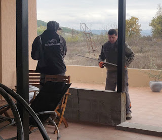 Rosie was back to school today, which was great, and she did a whole day again so is back in the swing of things well. We only had Sally and Bekir as Halil was off doing other things and they got stuck in to the tasks at hand with Sally up a very unsafe looking balanced ladder covering over the last of the electrics and Bekir up a ladder putting in light attachments that will support out light fittings. After he finished that Bekir went into the Art Room and put the conduit on the wall for the network so now I only have to fit the box and that's done. Sally, meanwhile, had put the scaffold up and was plastering the stairs; this is a much safer arrangement than that ladder. Around lunchtime the window people arrived to measure for the balcony windows and we discovered that the wall, put up by the useless guy who did the roof so badly the first time, was not actually flat. Now Bekir will have to fix this before we can get the windows installed however they can be fabricated as the measurements are all done. The day ended up with Bekir finishing the battening on the wall outside Room 13 and Sally keeping on with the plastering.