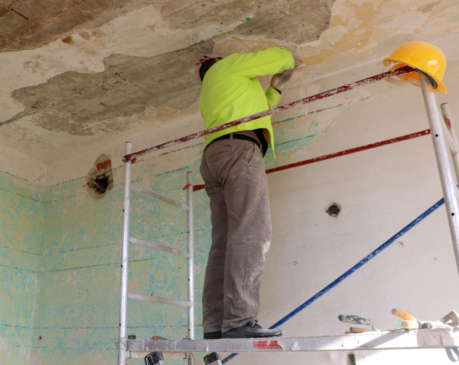 Bekir and Yulhan got stuck in straight away, as per usual, and lots of progress has been made this week. Yulhan was on scraping duties, finishing off what I started around the walls, while Bekir was completing my wiring job which also involved improving some of the channeling I'd dug for the joint boxes. He was very happy to have the plan with accurate measurements for the light placements however he did suggest a couple of changes like putting the boiler out in the corridor which frees up wall space. This also means that the extra light over the sink isn't needed - all good, really. With the scraping done Yulhan put some cement on the holes, replaced the old chimney fittings and then got on with more cement onto the roof to cover over the cables that Bekir had run. I love how tidy and careful they are and while they are always like this it's brilliant to see how they have kept the internet stuff all tidy together so we don't lose connection while they work around it. I've compressed the whole week (the weather is supposed to change so today is the last working day I think this week) and now they are drawing to the end. The cables are all cemented into the walls and ceiling and Bekir has started to put the plumbing in for the sink. Hopefully the weather won't be too bad and they'll be back on Monday and get close to completing it next week.